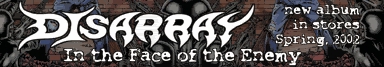 If you can't handle the hard stuff, don't see this show. The three man band known as Disarray is loud , hard, gritty and cool. The songs are heavy. WAY heavy. But then again, any band that is being produced by Dave Brockie (Oderus of GWAR) would have to be wouldn't they? I caught these guys on tour supporting their upcoming fourth release "In the Face of the Enemy" on Eclipse Records. They were awesome. Catch them on tour with GWAR. |