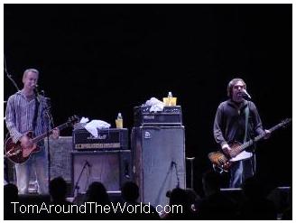 | Adam Schlesinger and company began the current leg of their tour in Syracuse, NY which is interesting because although Adam lived in Montclair, New Jersey, he spent a lot of time in the Syracuse area. His Grandmother, Rose Bernthal, was the former director of Syracuse's Landmark Theatre and was influential in saving the Historic structure from demolition. On visits to Syracuse, she would let Adam help with duties such as answering phones and selling tickets. For Adam, it was a bit of a homecoming. The crowd at the show was made up mostly of college students, the"Hot Topic crowd" and pre-teen girls that were drawn to the band because of the popularity of the "Stacy's Mom" single. It was not an uncommon sight to see groups of ten young girls escorted by the "cool" Mom hanging out in the lobby. Many of the fans at the show were not even alive when when the band released it's first album back in 1996. Fountains of Wayne chose two local bands: Candid and Last American Virgins to open the show. Both bands turned in respectable sets and got a lot of attention from the girls in the lobby after their sets. Both bands also did well selling t-shirts and autographing posters for the youngsters. When Fountains of Wayne finally took the stage the crowd was very much into it. Gina Stankivitz, who accompanied me to the show, is a really big fan of the band and sang along to every song on FoW's set list. Although most of the crowd sat patiently during the opening songs, when the band got to "Stacy's Mom" the entire audience jumped to their feet. It was like a big Rock & Roll sing-a-long. And speaking of sing-a-longs, at one point during the show, Chris Collingwood led the crowd in a rendition of "Happy Birthday" for Adam's 93 year old grandfather: Murray Bernthal who was in attendance. During the second to last song, which was Fountains of Wayne's first hit "Radiation Vibe", the band did a breakdown in the middle and performed a medley of classic rock songs before finishing. The youngsters in the crowd seemed a bit confused. One such young person that was writing an article for their school paper, leaned over and asked Gina if she knew the names of the "Classic rock songs." We got a good laugh out of it. The band closed with "Survival Car" and then came back for a two song encore. FoW Set list: I've Got A Flare / Denise / No Betyter Place / Barbara H / Red Dragon Tattoo / Hackensack / Hey Julie / Valley Winter Song / Sick Day / Stacy's Mom / Mexican Wine / Bright Future In Sales / Sink To The Bottom / Radiation Vibe / Survival Car Encore: *unknown*/ Leave The Biker Before the show I sat down with the band (and superfan Gina) to talk about the band's tour, Adam's history with the Salt City, Rachel Hunter, and life in general. We cracked a few beers, told a few jokes and had a blast. They were a very friendly bunch of guys and a lot of fun to meet. |