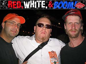 | There, they recorded their fourth release overall, 1998's How Does Your Garden Grow? Better Than Ezra soon parted ways with Elektra and issued a compilation of rare tracks entitled Artifakt using their official website. In 2001, the trio signed on with the independent Beyond Music label, issuing their next release, Closer. BTE took another hiatus before resurfacing in 2004 with a live album for Sanctuary. A greatest hits collection came along the following year, but to the delight of their devoted fans (known as the "Ezralites"), Better than Ezra were not finished. The band headed out to tour through the summer in support of Before the Robots which was released in May of that same year on the Artemis label. The band played a tight set and the crowd was very much into it. I only knew the few songs that I had heard on the radio. I had no pass to shoot photos from the pit, so I snapped off a dozen as I watched them perform. They didn't come out so hot, and few were usable. The band played for about forty-five minutes. After Better Than Ezra finished, the roadies set the stage for Social Distortion. But before we would be allowed to see the Orange County legends, there was to be a huge fireworks display. To start it off, the National Anthem was sung by a lovely young woman. The event program said that the song was supposed to be sung by a performer named Facia. But, the girl that sang it didn't look like the girl in the program. I heard that she was one of the American Idol finalists. Either way, whoever she was, she turned in a wonderful performance. I will give credit to anyone that tackles that tune. As soon as she finished the pyrotechnics began. |