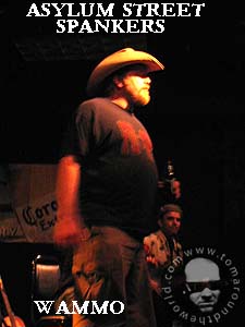 | We came back into the club and headed out to the patio to have a cigarette before the show. As we sat and smoked under the giant umbrellas, I was joined by Sick, the band's fiddle player. He was very talkative and friendly. After finishing his cigarette, he told us there was about five minutes until the Spankers went on stage. We finished our smokes and went in to get comfy and see the show. Before I go any further, I must give a brief history of the band, and although it is not as colorful and humorous as Wammo's story, it is still interesting. I have also included a short bio for each of the current members, so that you can understand the different aspects that had to come together to create the Spankers. The Asylum Street Spankers are from Austin, Texas. The seven piece band defies genre classification. They take many different styles ranging from 1920's Jazz to modern Gangster Rap and combine them to create something so unique it cannot be defined. Their showmanship is amazing and they are all brilliant musicians and singers. They have redefined acoustic music in every way, and their list of accolades continues to grow. The Asylum Street Spankers were formed in 1994 by Christina Marrs, Wammo, and Guy Forsyth in Llano, Texas. The band's name comes from a combination of the former name of Austin's Guadeloupe Street and "spanker," which is a descriptive term for a style of acoustic playing. Their infectious indefinable musical style and smart sense of humor soon won over listeners in Austin, Texas, which is no small achievement when you consider the sheer numbers of musicians vying for the public's attention in the Live Music Capitol of The World. Audiences were thrilled with the band and the Spankers were packing halls three nights a week. In 1998, Guy Forsyth left the band to pursue other options. Since then, bandleaders Christina Marrs and Wammo have continued touring with their ever-evolving troupe of talented and eccentric musicians. They have toured all over the world winning fans and admiration from their peers and continue to do so. There have been nearly thirty-five different members and/or guest members over the years that have been Spankers. |