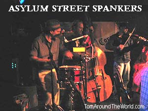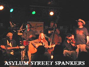 | The Asylum Street Spankers are the Best Band you have probably never heard of. Until a few years ago, I had never heard of them either. But once I had heard them, I was hooked. Here is how it started for me: On November 7, 2003 I went to see the band The Supersuckers at Valentine's in Albany, NY with my then girlfriend, Chrissy Munari as our first official date. As we waited to do my interview with the band, we had a drink in the bar downstairs. The jukebox was on and playing a variety of songs. Soon, a song about drugs and beer came on that was very funny. Chrissy and I immediately wanted to know who it was. I walked over to the jukebox and looked up the song. It was titled "Beer" from the album Spanker Madness. It was performed by the band Asylum Street Spankers. Both Chrissy and I wanted to hear more. On that day I began two love affairs, one with an amazing and beautiful woman and another with an unbelievably talented band. (Unfortunately, Chrissy broke up with me several months later, breaking my heart. But my love affair with the Asylum Street Spankers continues and will persevere until my dying day. The band's music actually helped me through the dark period of the breakup and still cheers me today as I write this article.) A few weeks later, I saw that the Spankers would be playing in Utica, NY and requested an interview. They set me up, but on the day of the show we were unable to locate the venue and the phone number we had ended up being that of a Chinese restaurant. |