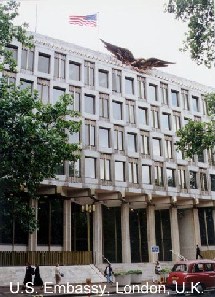 Grosvenor Square has been the traditional home of the official American presence in London since John Adams established the first American mission to the Court of St. James's in 1785. During the Second World War, Dwight D. Eisenhower established a military headquarters at 20 Grosvenor Square, and during this time the square was nicknamed "Eisenhower Platz". The United States Navy continues to use this same building as its headquarters for Europe and West Africa.Access to the western side of the square is severely restricted by the very obvious security measures around the U.S. Embassy, a large and architecturally significant modern design by Eero Saarinen, completed in 1960. The Embassy was a controversial insertion into a mainly Georgian and neo-Georgian district of London. It is a nine-story building, of which three are below ground. A large gilded aluminium Bald Eagle with a wingspan of over 11 metres (35 feet) is situated on the roof of the chancery building, making it a recognisable London landmark. In September 2002 a man was arrested at Stockholm's Västerås Airport trying to board Ryanair Flight 685 with a loaded gun. Media reports claimed that the man was planning to hijack the aircraft and crash it into the American embassy in London, using the rooftop eagle to identify it from the air. This Embassy is the only U.S. Embassy situated on land that is not owned by the U.S. government. The land is leased from the Duke of Westminster who, when asked if he would sell the land outright, responded that he would if the U.S. Government would return the land that belonged to his family in the U.S. before it was confiscated during the Revolutionary War. The request was denied. A statue of Franklin D. Roosevelt, sculpted by Sir William Reid Dick, stands in the square, as does a later statue of Eisenhower, sculpted by Robert Lee Dean and unveiled on January 23, 1989. I made a quick mental note on the location of the Embassy in the event of any bad happenings. (It is always good to know where you can hide if you somehow unwittingly instigate an international incindent.) |