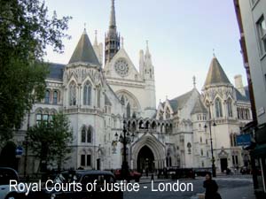 | The Royal Courts of Justice, commonly called the Law Courts, is a building that houses the Court of Appeal and the High Court of Justice of England and Wales. Courts within the building are open to the public although there may be some restrictions depending upon the nature of the cases being held. The building is a large grey stone edifice in the Victorian Gothic style and was designed by George Edmund Street, a solicitor turned architect, and built in the 1870s. The Royal Courts of Justice was opened by Queen Victoria in December 1882 and became the permanent home of the Supreme Court. It is on The Strand, in the City of Westminster, near the border with the City of London and the London Borough of Camden. It is surrounded by the four Inns of Court. Those who do not have legal representation may receive some assistance within the court building. The Citizens Advice Bureau has a small office in the main entrance hall where lawyers provide free advice. There is usually a queue for this service. (I wish they had something like this in the States ) There is also a Personal Support Unit where litigants can get emotional support and practical information about what happens in court. The main criminal court (Crown Court), housed separately, is the Central Criminal Court, popularly known as the "Old Bailey." (For you movie buffs, that was the first building blown up by the character "V" in the beginning of the film "V for Vendeta.") |