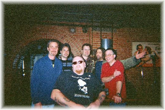 Bim Skala Bim made a stop in the 'Cuse and added some extra "HOPS" to the mix in a FREE show at the Empire Brewing Company. Being that it is literally accross the street from The Blue Tusk, I couldn't miss this show. My friend Chris is a manager there and got me a few moments with the band during their sound check and even took the photo on the left. What a great bunch of guys. I told them about what I do and gave them each a TATW button. I thanked the guys for their time and said that I would see them later at the show. I had to work at The Blue Tusk that night but I took a break from working at the 'Tusk and caught the band's set. The ska flowed as freely as the beer when the Boys from Boston cut loose with their up-tempo, manic sounds. If you weren't moving to the groove that these guys laid down, you should see a doctor because YOU'RE DEAD! These guys didn't get to be America's longest playing ska band without good reason. This is the stuff you listen to when you've got to move. (I play these guys a lot when I am cleaning house on account of the fact that I get all excited and dancing around as I work and before I know it - I'm done.) I have this theory that if a band has horns it will make you happy and this is a band that helps prove it. |