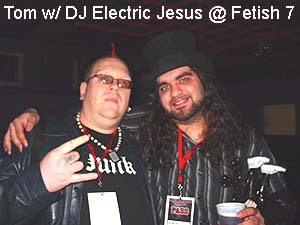 While we waited for Voltaire to play we checked over the wares being displayed at a sex toy booth, and listened to DJ Dante. During that time, the club filled with people dressed in various costumes and bondage gear. It was a fantastic looking crowd. Finally, midnight came and Voltaire came onto the stage.