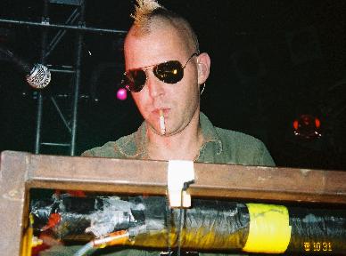 (pointing at Joolz Hodgson). That guy can't play guitar for shit. (Laughter) That guy there (pointing to Raymond Watts) in the cowboy hat, he's a waste of fucking space