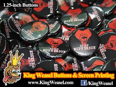 1.) Download 1.25-inch Button Template & Create Your Button 2.) Select & Order Quantity of Buttons Using PayPal. 3.) Email Art To: KingWeasel315@gmail.com For Orders Over 1000, Email for Pricing & Turnaround Time. |