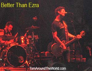 | They had been playing when we came in and we could hear them as we walked around. They had sounded pretty good from what I had heard. Sven and I walked up when there were only a few people left and started talking to them. They were really friendly and were happy to sign our programs. I explained who I was and what I do. I said that I would like to sit down with them in the futre and do a full-on interview. They seemed down with that idea. I gave them buttons and told them to be sure and check out the site. They were ready to go backstage and relax and it was time for Better Than Ezra. |