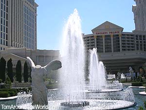 | The noise from the coaster had just ended and there was a second of silence that allowed everyone in the whole loading area hear it. The entire place fell out laughing. The other riders were laughing. I was laughing, Sven and Rob were laughing, and even the ride operators were cracking up. One of them was doubled over and could hardly breathe. It was one of those things you absolutely had to be there for. I just opened my mouth and it came out in the moment, unrehearsed and extremely funny. It made it the whole ride experience just that much better. And we got it all on tape. By the time we were done filming there was only about a minute and a half of recording time left on the tape. I gave the ride operators buttons as we left and told them to watch the site check out the story. My companions and I exited the Sahara and walked up The Strip. I stopped at several different shops and convenience stores looking for MiniDV Digital Video tapes. Places would have VHS tapes, but not what I needed. We eventually wound up at a Walgreen's located on The Strip. I purchased a pack of two video tapes. I was all set for the big show. Rob knew where we had to go to get our bus and we took off towards the appropriate stop. On the way we past by Caesar's Palace and I photographed some of the beautiful statues and fountains. When we finally got to the bus stop, we had just enough time to smoke a cigarette before our ride showed up. We asked the driver to let us know when we were close to Desert Breeze Park. |