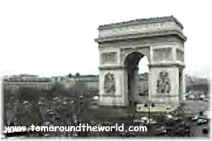 | Le Arc de' Triomphe The Arc de Triomphe is located in the center of the largest rotary in France at the end of the Avenue des Champs-Elysées. The Arc and the Place Charles de Gaulle that surrounds it, together form one of the most famous landmarks in Paris. There are twelve avenues that radiate from the Arc, which explains why it is also called Place de l'Etoile. (Etoile is French for the word "star".) From the terrace on top of the Arch, you can see the 12 avenues, many of them named after Napoleonic victories (Wagram, Lena, Friedland) and illustrious generals (Marceau, Hoche, Carnot). The Arc was beautiful, but we had to figure out how to get there. I asked a local for directions and found out we had to go back down into the Metro, follow a tunnel, and come back up on the other side. Then we had to go back down into another tunnel that took us to the ticket booth for the Arc. We paid to go up and up we went, right back to the street level. |