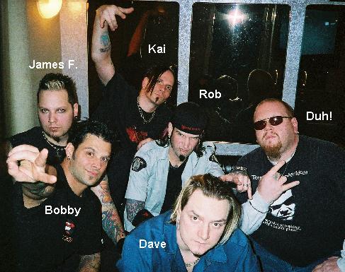 Rob: HOLY CRAP! How'd you find that out? That's privileged fuckin' information, dude! Tom: No way! It's on your website. Rob: That's like twenty fuckin years ago! Bobby: Horn Porny? Rob: Porny Horny, yeah? Tom: and like other bands from the Vancouver scene like Econoline Crush and Bif Naked; you guys have really worked hard touring to get your music out to the masses. How has the hometown crowd reacted to your success? Have they been pretty psyched about it? Rob: We don't play in Vancouver that much, because we used to get a lot of support from the radio in the past but now they're not supporting this new record and its our best record so I don't know why. But its kind of an ongoing battle right now. Because it's a corporate kind of Canadian thing They'd rather play Tragically Hip and shit like that, ya know. The shows down here go off way more than the shows at home actually. We'd way rather play down in the States than Vancouver. I know it sounds bad, but that's the way it is. Tom: Rob, you and Dave do the majority of the writing, lyrics and melodies, respectively; do you find it easy working together or do you come head to head on a lot of things? Rob: well Dave and I Kai: about 50/50 (Laughter) |