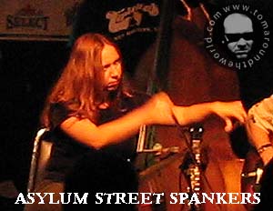 | The Asylum Street Spankers are the Best Band you have probably never heard of. Until a few years ago, I had never heard of them either. But once I had heard them, I was hooked. Here is how it started for me: On November 7, 2003 I went to see the band The Supersuckers at Valentine's in Albany, NY with my then girlfriend, Chrissy Munari as our first official date. As we waited to do my interview with the band, we had a drink in the bar downstairs. The jukebox was on and playing a variety of songs. Soon, a song about drugs and beer came on that was very funny. Chrissy and I immediately wanted to know who it was. I walked over to the jukebox and looked up the song. It was titled "Beer" from the album Spanker Madness. It was performed by the band Asylum Street Spankers. Both Chrissy and I wanted to hear more. On that day I began two love affairs, one with an amazing and beautiful woman and another with an unbelievably talented band. (Unfortunately, Chrissy broke up with me several months later, breaking my heart. But my love affair with the Asylum Street Spankers continues and will persevere until my dying day. The band's music actually helped me through the dark period of the breakup and still cheers me today as I write this article.) A few weeks later, I saw that the Spankers would be playing in Utica, NY and requested an interview. They set me up, but on the day of the show we were unable to locate the venue and the phone number we had ended up being that of a Chinese restaurant. |