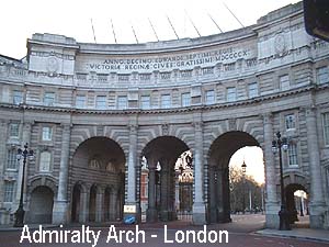 The building was commissioned by King Edward VII in memory of his mother Queen Victoria, although he did not live to see its completion. A Latin inscription along the top reads: : ANNO : DECIMO : EDWARDI : SEPTIMI : REGIS : Admiralty Arch is a Grade I Listed Building. In the United Kingdom the term 'Listed Building' refers to a building or other structure officially designated as being of special architectural, historical or cultural significance. It is a widely used status, applied to around half a million buildings. A listed building may not be demolished, extended or altered without special permission from the local planning authority. |