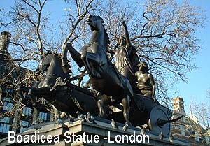 The tour continued and soon passed the Big Ben, the Houses of Parliament, Westminster Abbey, and crossed over the Westminster Bridge. It was constructed in 1854-62 from the designs of Thomas Page. It was the second bridge over the River Thames (London Bridge being the first) and was built to replace an older stone bridge. The 353m/810ft long bridge is one of the most elegant of the London bridges and commands a fine view of the Houses of Parliament. On the Westminster side of the bridge stands a huge bronze sculpture of Boadicea (also Boudicca), Queen of the Iceni, one of two British women to be mentioned by the Romans in their writings. She was the wife of King Prasutagus who was given the Client Kingship of the Iceni after the Icenian civil war of 47 AD. Following Prasuttagus' death, around 60 AD, the kingdom was pillaged by the imperial procurator Decianus Catus. |
