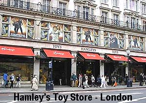 The new Queen Elizabeth II had not forgotten her own childhood companions. Both Prince Charles and Princess Anne received toys from Hamleys and, in 1955, her Majesty honored Walter Lines with his secondRoyal Warrant as a 'Toys and Sports Merchant'. Hamley's became as much a London attraction as Buckingham Palace or The British Museum. Nowhere was the magic of childhood so precisely captured. And as toys changed, so did Hamley's; in 1981 it moved to 188 -196 Regent Street. It is still the biggest toyshop in the world. Over the years Hamley's has developed an international reputation for choice, quality and innovation. The magical flagship store on Regent Street has over 7 floors packed full of toys and games, with live and interactive demonstrations. |